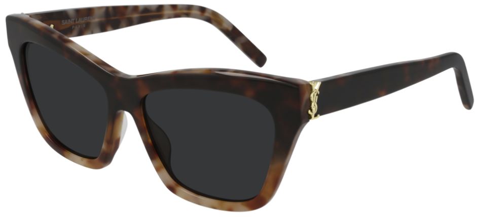 THE STYLE IS CHARACTERIZED BY THE ICONIC YSL MONOGRAM LOGO POSITIONED ON THE HINGE OF THE TEMPLES.