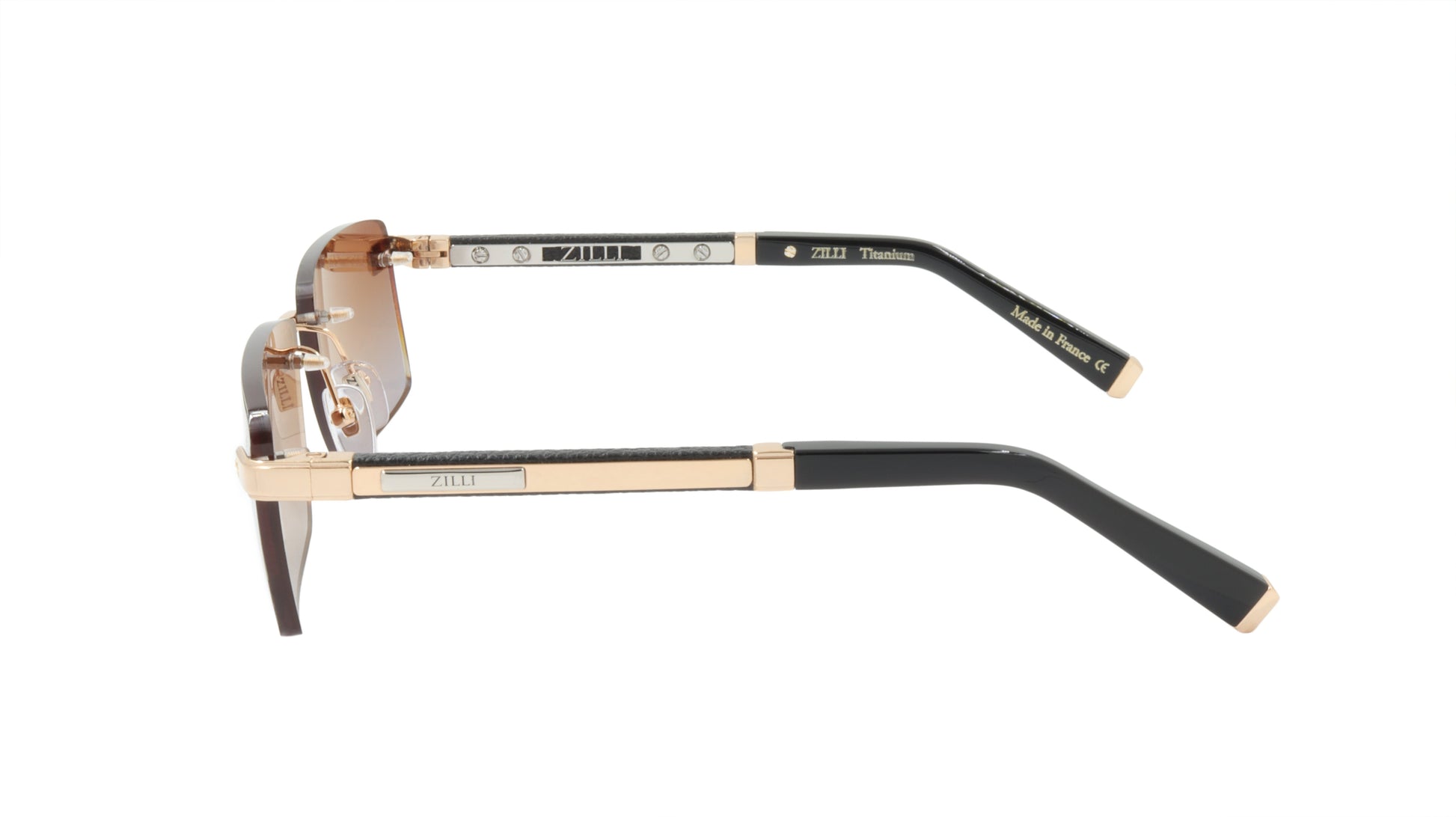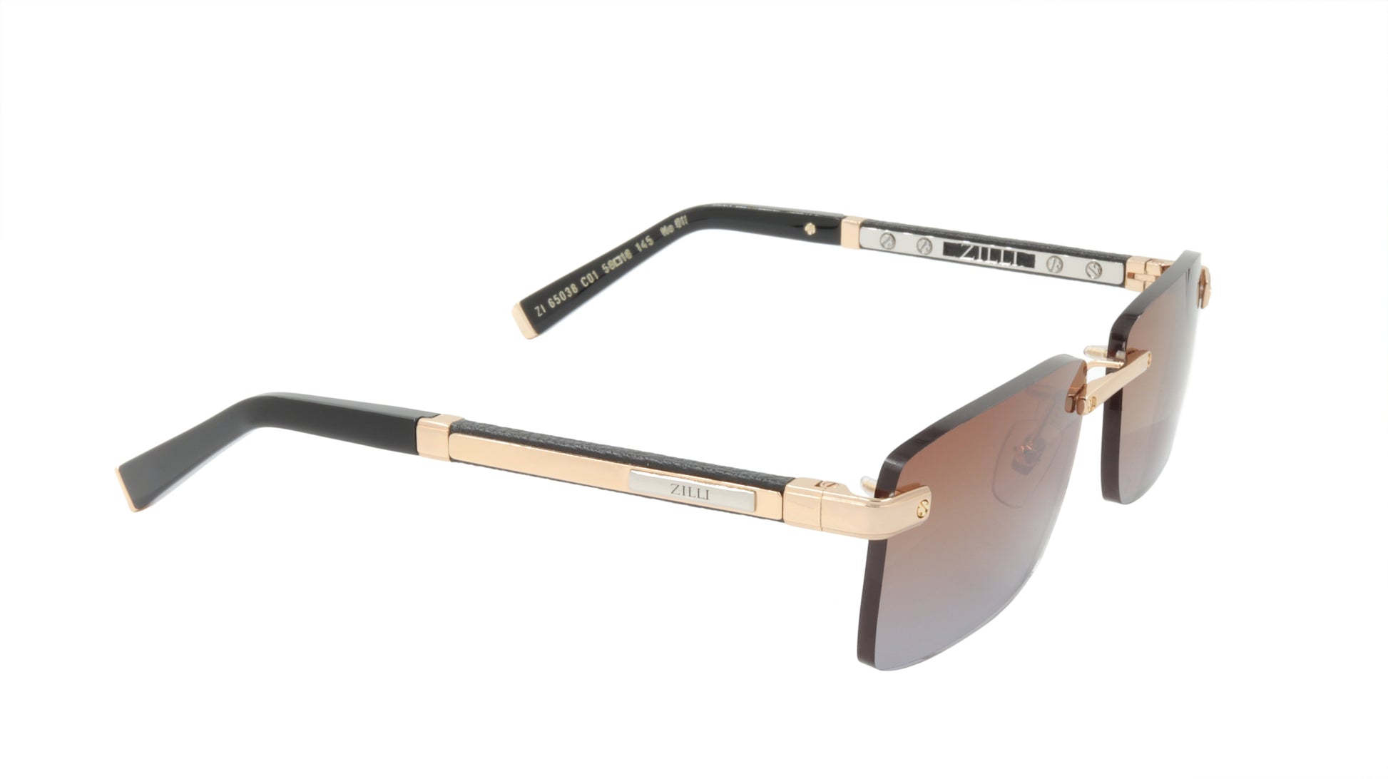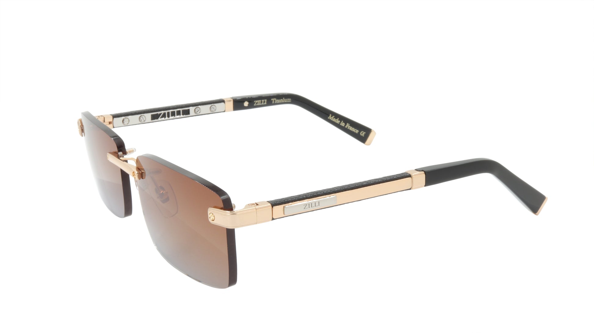 | ZILLI sunglasses Handmade Cellulose Acetate, Titanium, Leather Model  ZI 65038 C01 ATTENTION: Each ZILLI frame has it unique serial number. We do not make a photo of every similar frame that we have, so frame serial number on the photo will differ from the Serial number on the frame that you will get. The new ZILLI Eyewear collection, made in France, was born from the collaboration between the luxury brand and Grosfilley Lunettes. It is distinguished by chic and the elegant style and is equipped with state-of-the-art technologies. Outstanding innovations were applied to the key points of the frames, the temples and the lenses. An exclusive pure titanium hinge was developed by Grosfilley for the ZILLI collection. Developed in collaboration with our Italian partner Divel and especially for ZILLI, equipped with the latest anti- reflective technologies, anti-scratching and anti- fouling treatments (oleophobic), polarized sun lenses to guarantee a clear vision with contrast and color fidelity. The lingot ZILLI is also present on the outer part of the branches, with contrasts due to the different titane treatments (gold, palladium or ruthenium) Glasses come with box, hard case, soft poach, cleaning cloth, brochure, passport card