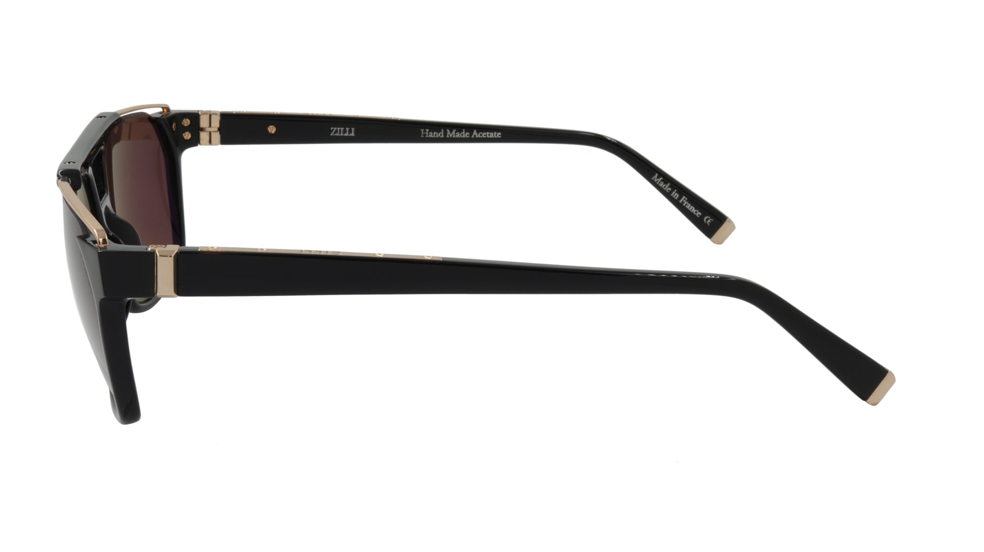 Model ZI 65048 C02 ZILLI, curated designer sunglasses are for you. It's sporty yet chic design with black and gold is smooth all around the sunglass frame. However, the top of the sunglass has a distinctive style. The solid black top only goes part of the way with the continuation in a think, flat gold metal that is separate from the lens. The Zilli sunglass is a unique design found by no other. Each ZILLI sunglass is individually numbered to identify its handcrafted workmanship. You'll never find two frames that are alike as each will have a slight difference. You'll appreciate it's individuality that works to design the character and qualities that make up...you! ZILLI is crafted with titanium and acetate for long-lasting durability. You can expect the latest in anti-reflective technologies, anti-scratch and anti-fouling treatments (oleophobic), polarized sun lenses to guarantee a clear vision with contrast and color. Framebay.com is an authorized dealer of ZILLI.