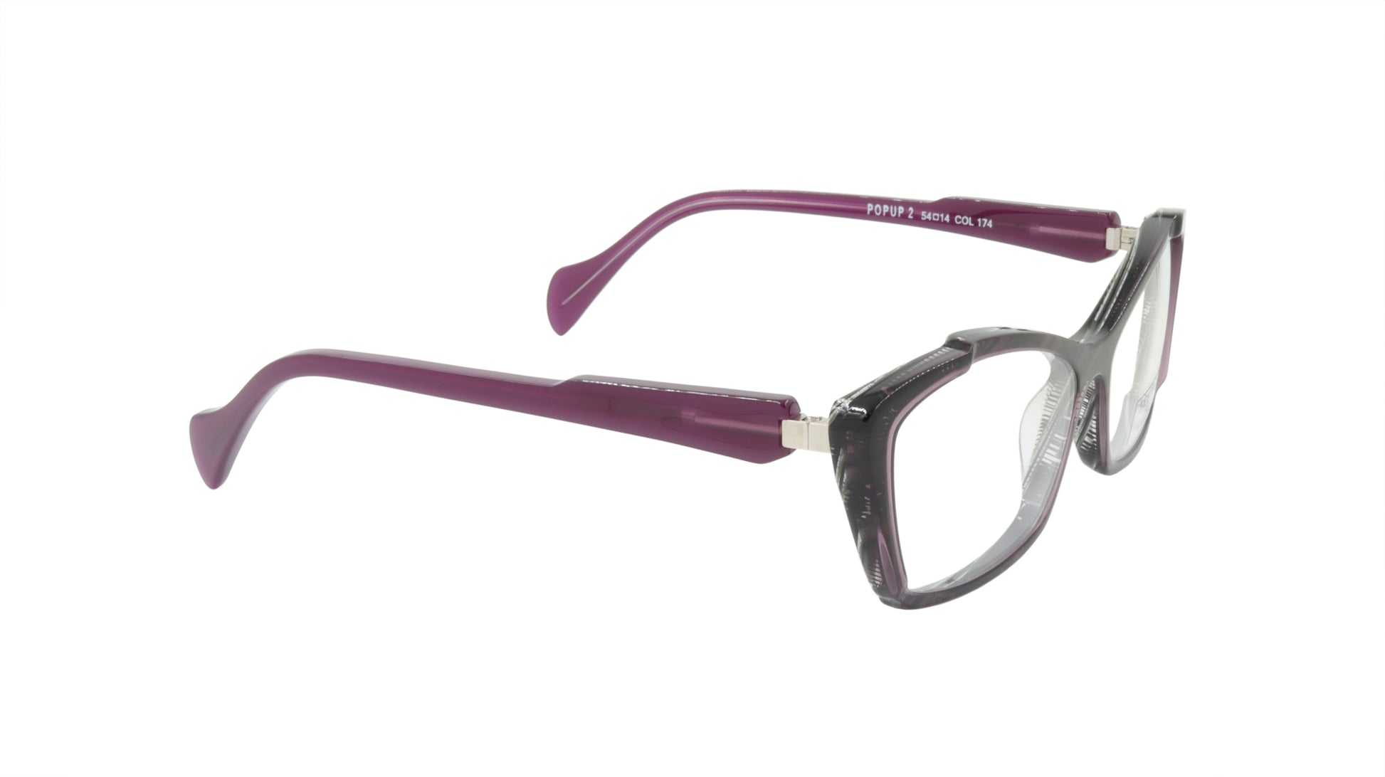 Face A Face eyewear is always fun and unique. These hard to find eyewear uses a combination of rectangle with a hint of cateye shape frame that is so interesting to look at! The eyewear feature lace purple color on the eye stems, but watch out. Those Face A Face eyewear has a distinct hint of texture in its design. These beautiful, made in France fashion eyewear are comfortable, stylish and unique as the person wearing them.