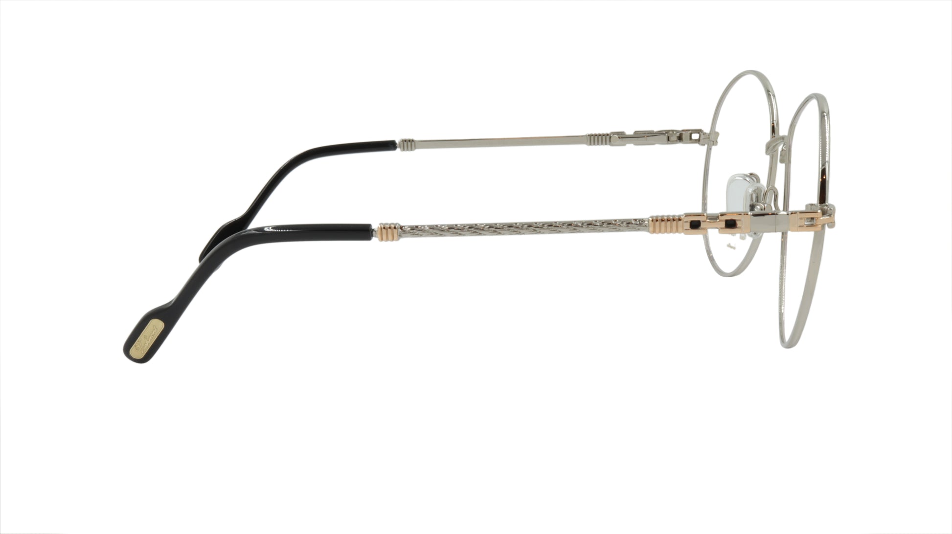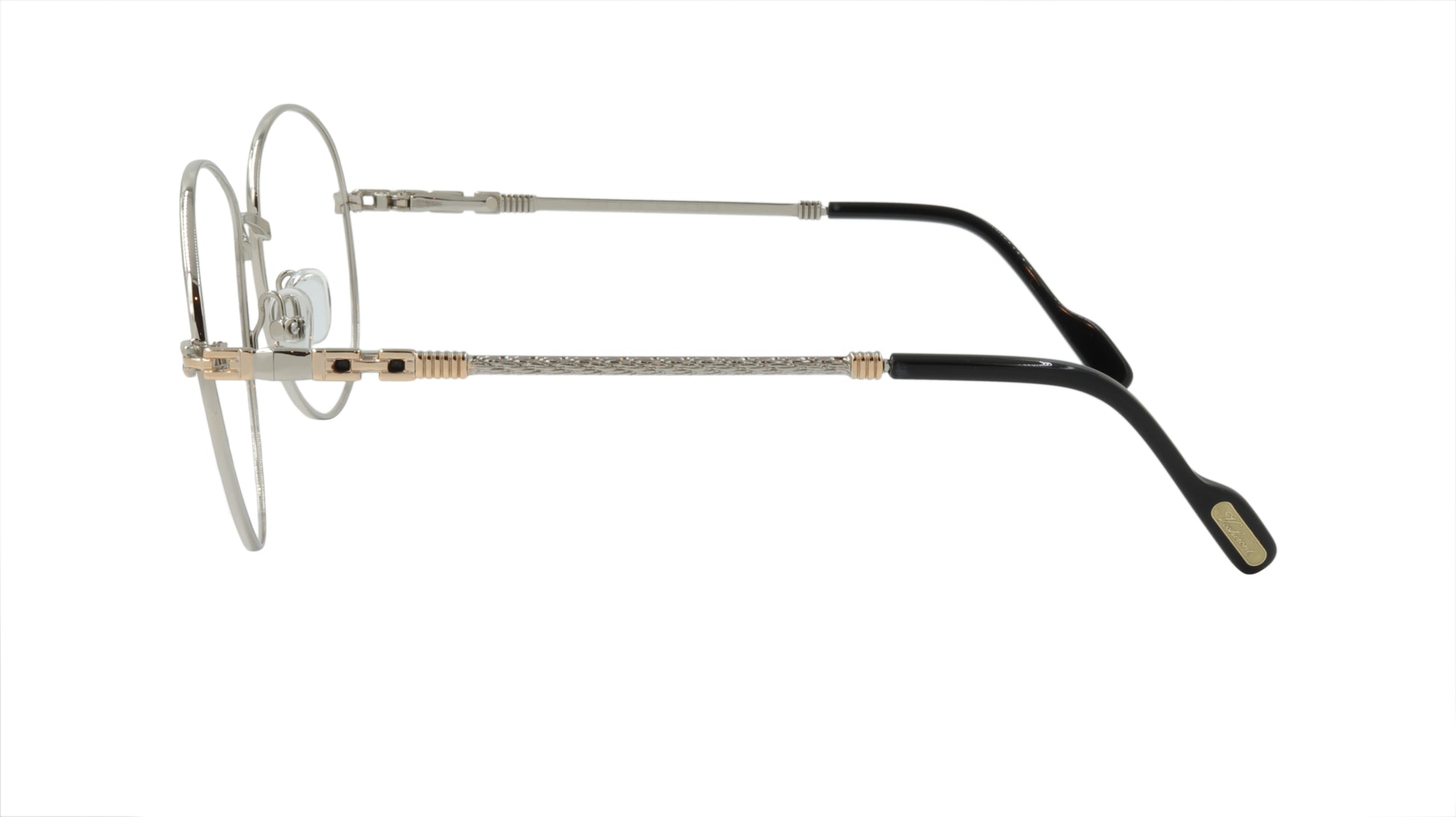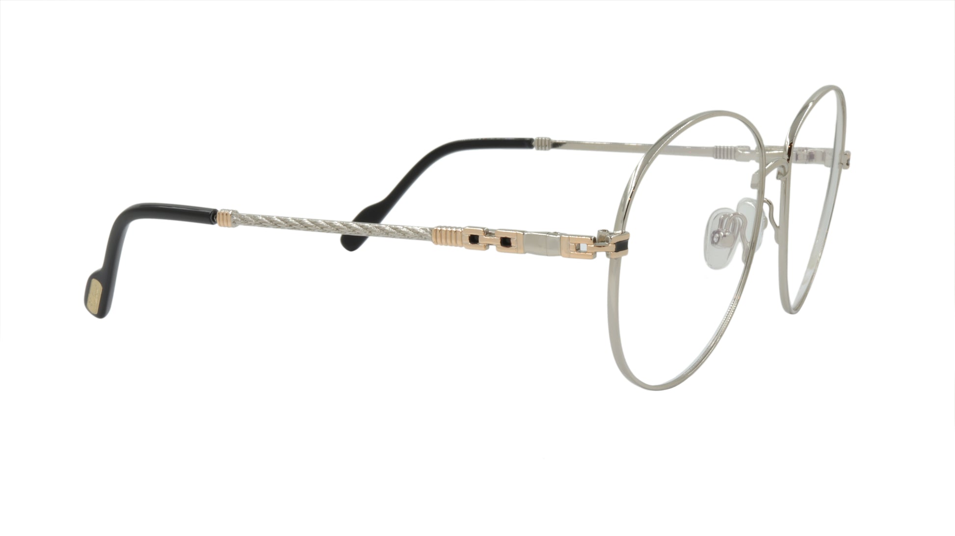 Paul Vosheront distinguished eyewear is handcrafted in Italy with a smooth rounded appearance with a rope or braided arm. Gold accents complete the look.