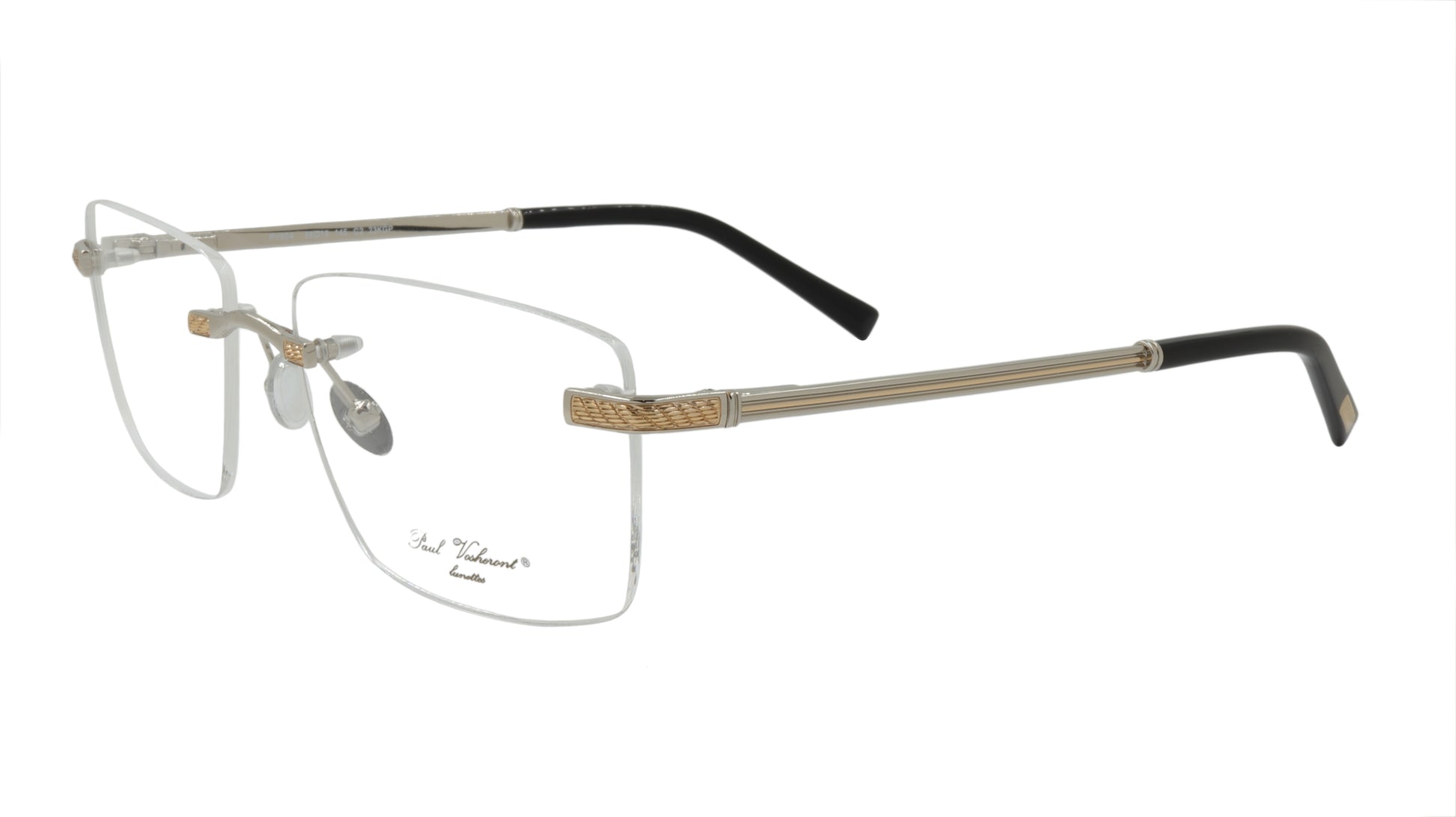Paul Vosheront, men's luxury eyewear combines silver & gold in new ways. The glass arm features silver stems with gold center, accented with gold attached to the rimless glasses. Framebay is an authorized dealer of their men's designer eyewear.