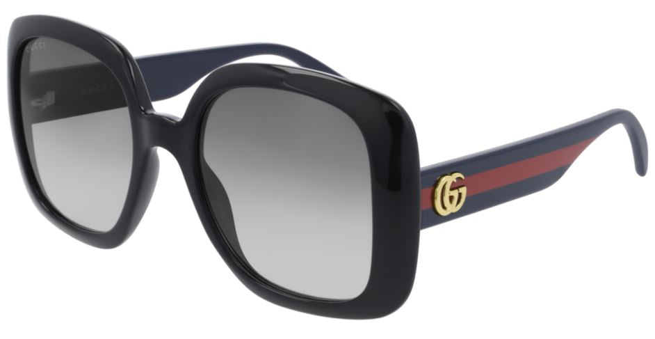 Best Seller Carry over concept from SS17. Gucci iconic squared oversize acetate shape for diva-like look. Gucci interlocking logo on temples. Feminine color palette; transparent tones on the front combined with gradient colors on temples.