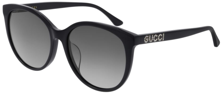 Gucci Strass combines elegance and timeless design. Oval cat eye feminine shape. Gucci logo interpreted in sparkling strass on temples. Classic color palette with milky and opal tones in the range.
