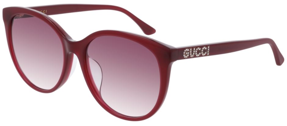Gucci Strass combines elegance and timeless design. Oval cat eye feminine shape. Gucci logo interpreted in sparkling strass on temples. Classic color palette with milky and opal tones in the range.