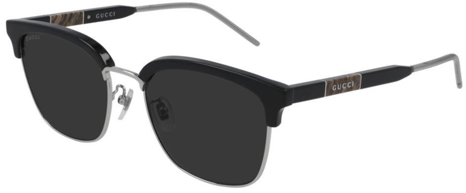 Gucci lettering logo engraved on a masculine colored plate on temples.