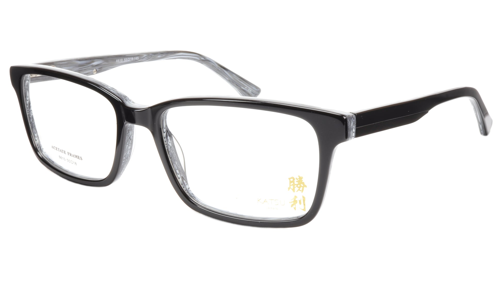 KATSU 6610 Eyeglasses Frame Acetate Black White Swirl Lacquer 55-18-145 Japan