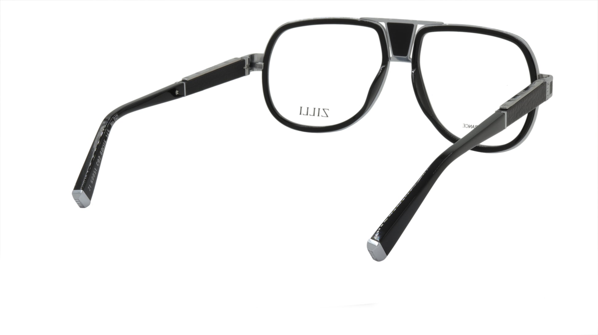 Zilli eyewear are synonymous with the highest quality materials found in the market today. That's why each Zilli eyewear has a unique serial number embedded in the eyewear itself. These Zilli eyeglasses are made of black leather accented with silver titanium mixed with a bit of acetate. The soft rectangle shaped eye frames gently rest on the face for a comfortable fit that lasts all day.